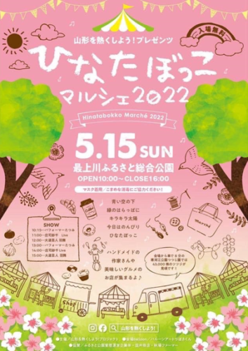 山形の話題【山形イベント情報5/15】ひなたぼっこマルシェ(最上川ふるさと総合公園)が開催されるようです! 2022年5月15日寒河江市の最上川ふるさと総合公園で「ひなたぼっこマルシェ」が開催されるようです。 この記事では「ひなたぼっこ