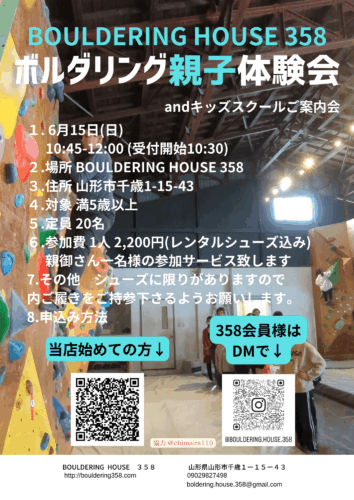 山形の話題【やまぐらピックアップ】これからの季節は屋内スポーツに挑戦してみませんか? 「やまぐらパートナー」からのおすすめ情報を紹介する「やまぐらピックアップ」! BOULDERING HOUSE 358さんからのお知らせです! ぜ