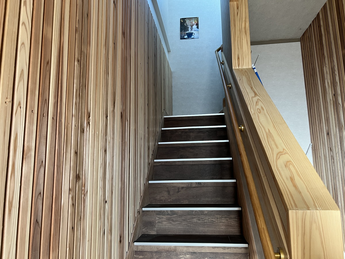 2階に到着すると、窓が大きく自然豊かな朝日町の景色を楽しめます!