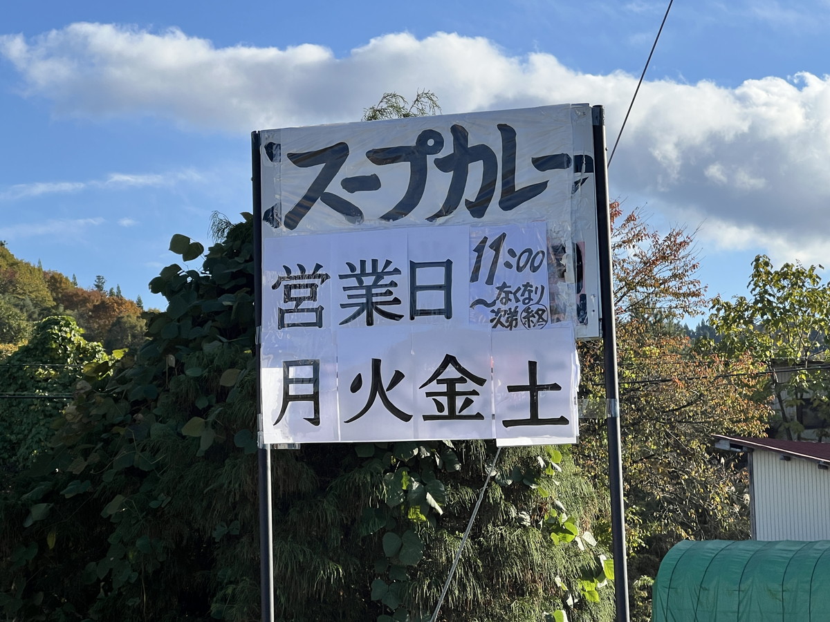 「朝日町四ノ沢(国道278と県道18号の交差点付近)にスープカレーのお店がオープンしたようです。」