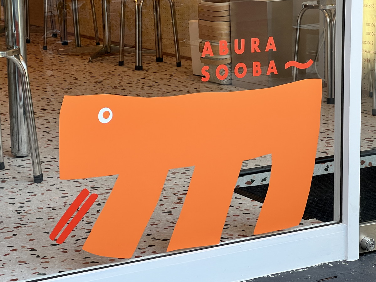 油そばのあぶらをカタカナで書いた「アブラ」をよく見ると・・・「フフフ」が3つ並んでる!?