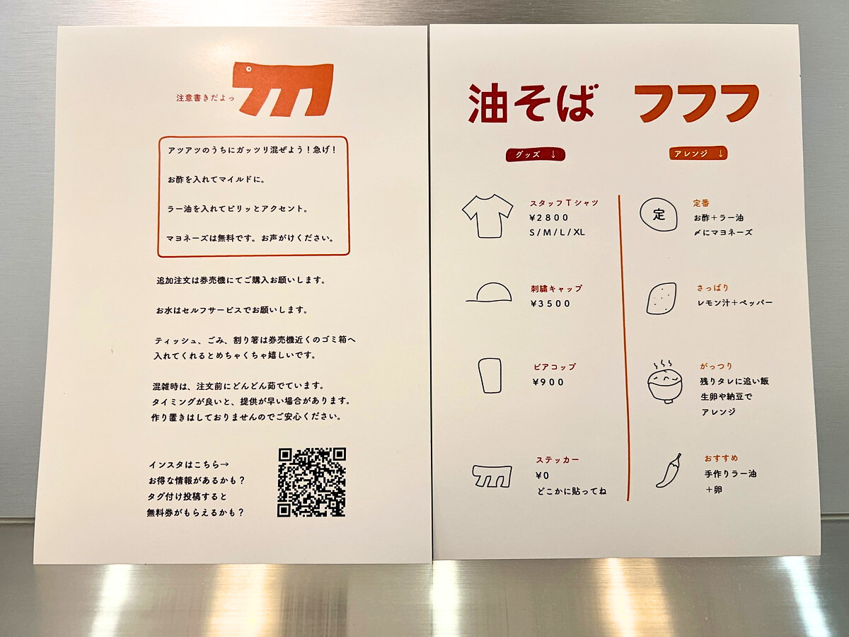油そばの食べ方やお店の注意書きもあるから安心です。