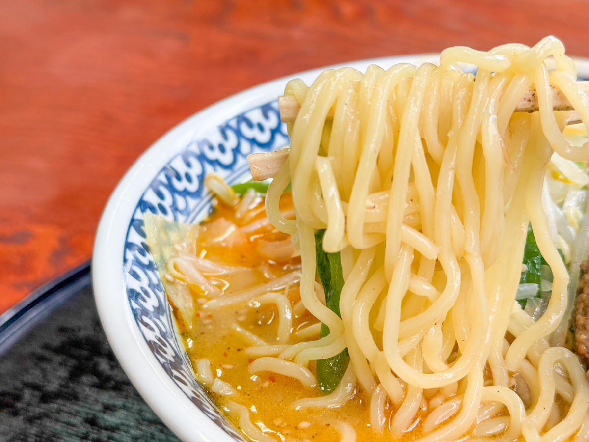 麺は中太のつるもち食感で最後までおいしくいただけました。