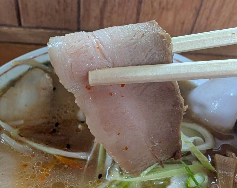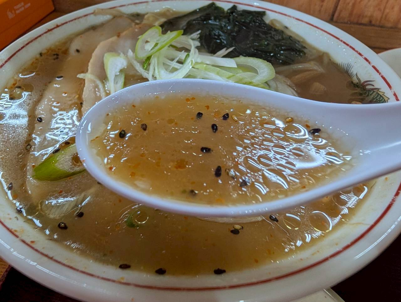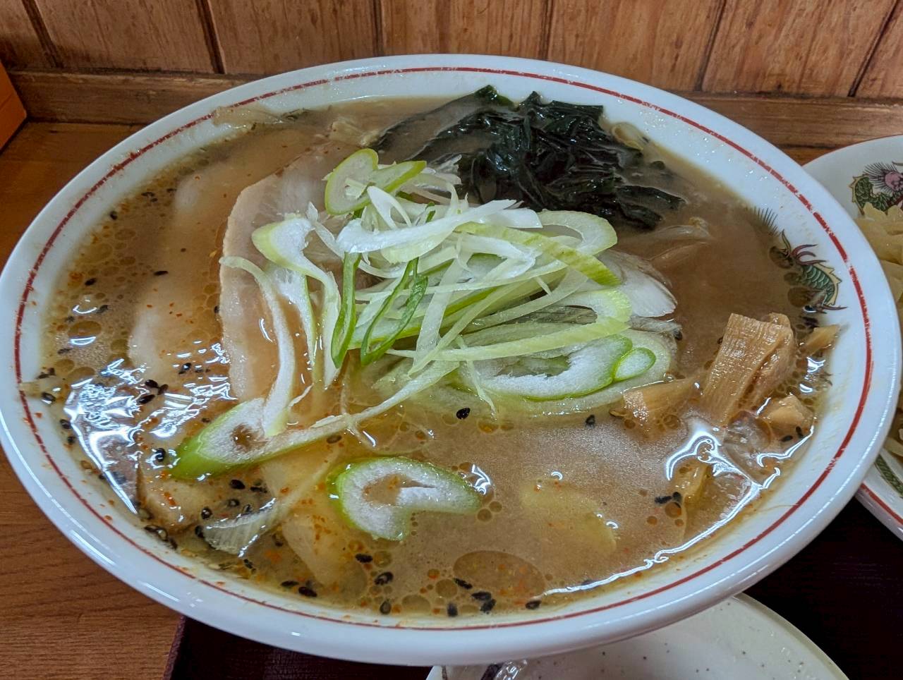 表面に見えてるのはチャーシュー、ネギ、メンマ、ワカメ、黒胡麻といったところ。