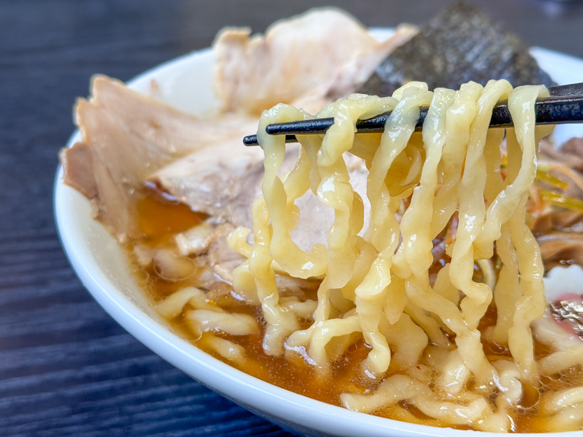 山形を代表する酒井製麺所で特注しているという多加水熟成麺は、牛骨スープとの相性が抜群です。
