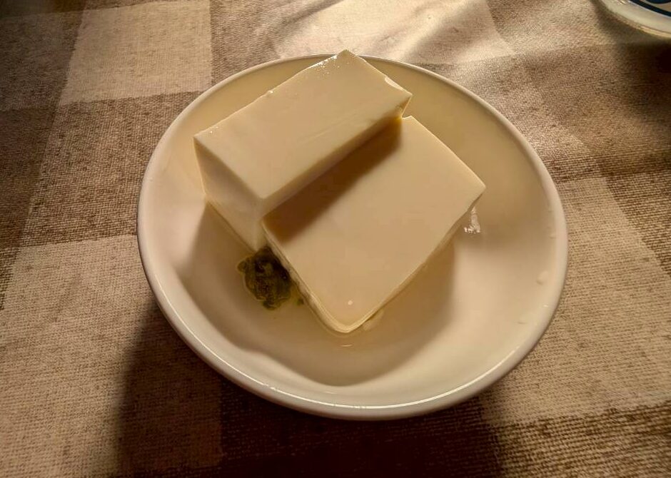 お酢と柚子胡椒で頂く絹ごし豆腐、