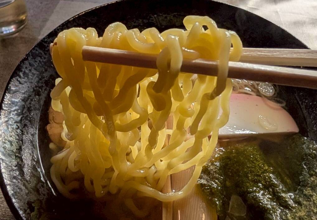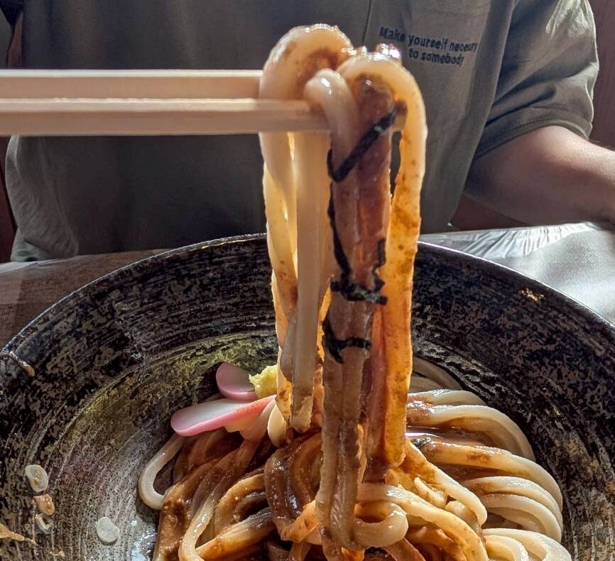 麺は中太縮れ麺で、喉越しが良いタイプ。