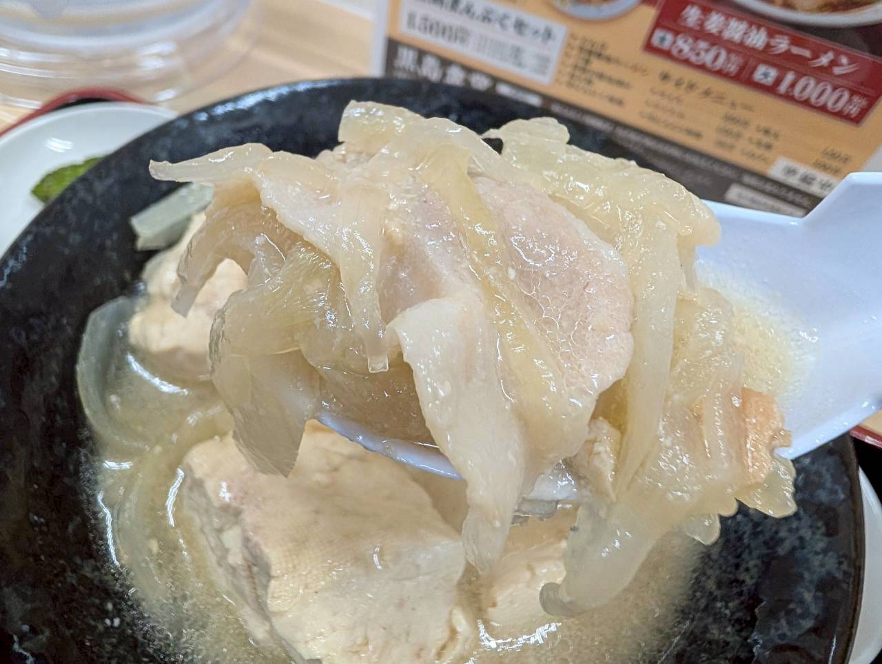具材は豚肉、豆腐、玉ねぎです。