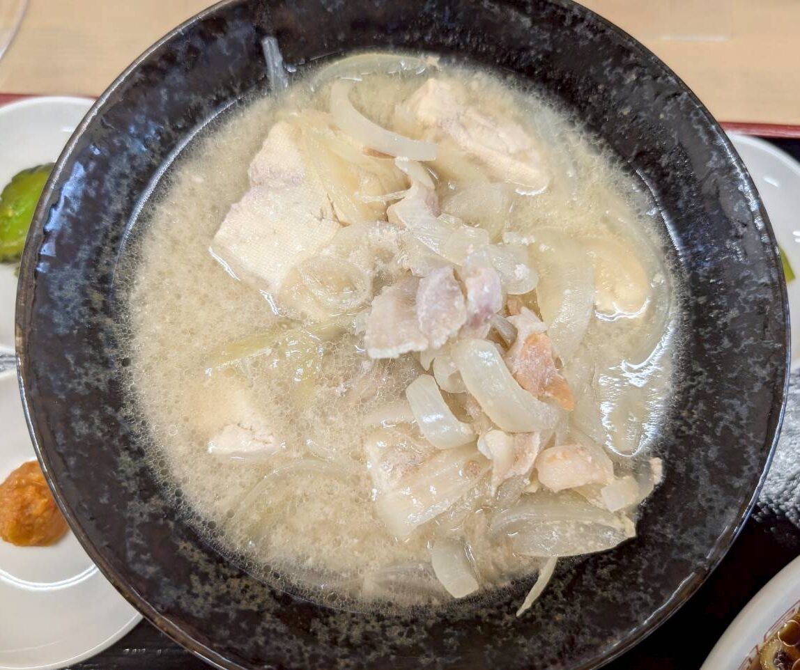 豚汁は無水で玉葱の水分のみで作られる無水豚汁との事で