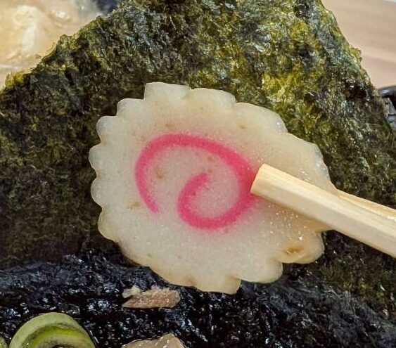 チャーシュー、メンマ、ナルト、焼き海苔、ネギ、ホウレン草。