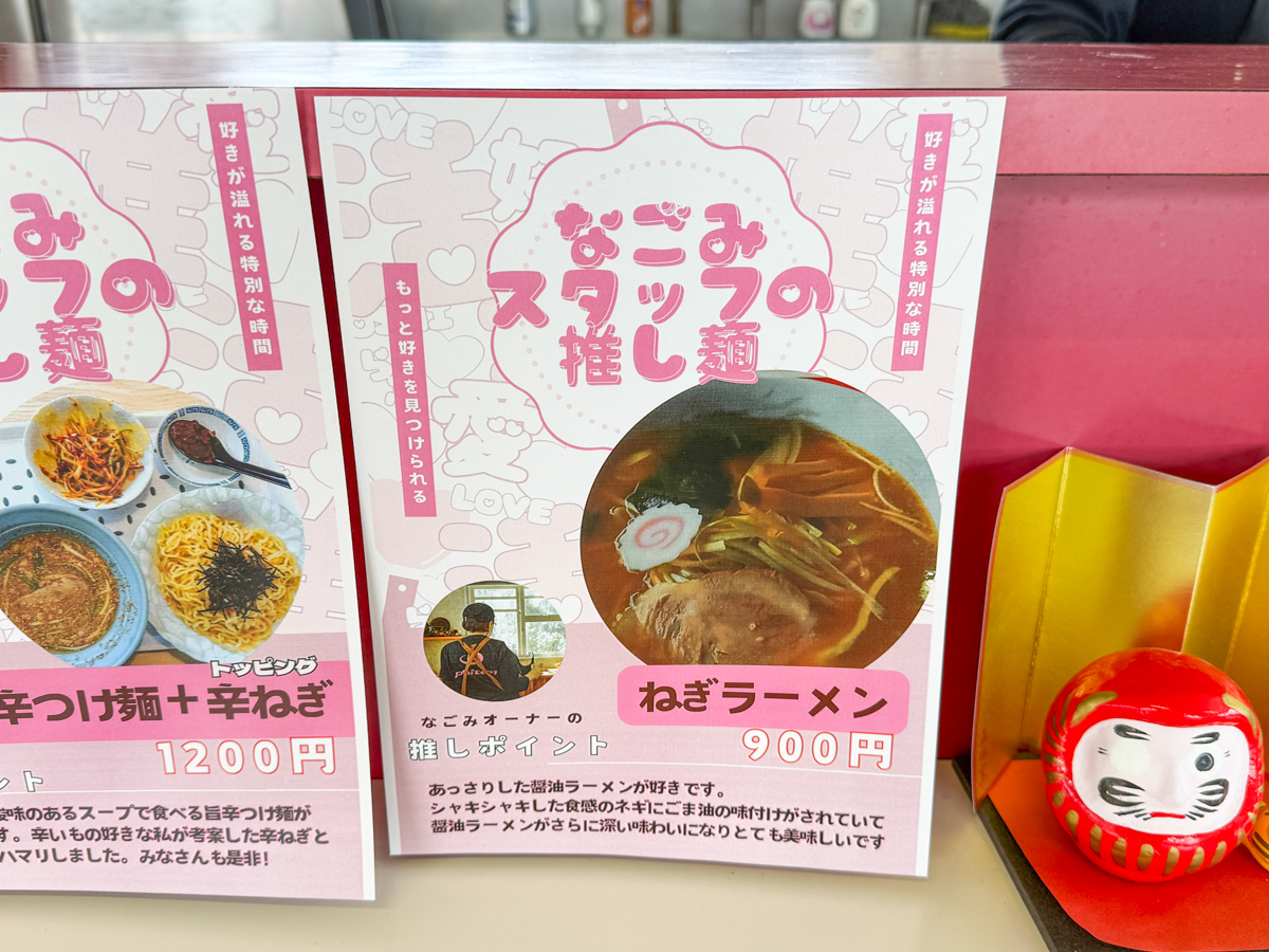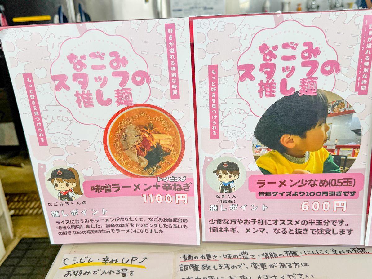 店内の「推し麺」POPには、味の特徴やおすすめポイントが書かれているので、迷ったときの参考にもなりますね。