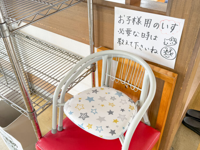 お子様椅子や食後に嬉しい飴なども。