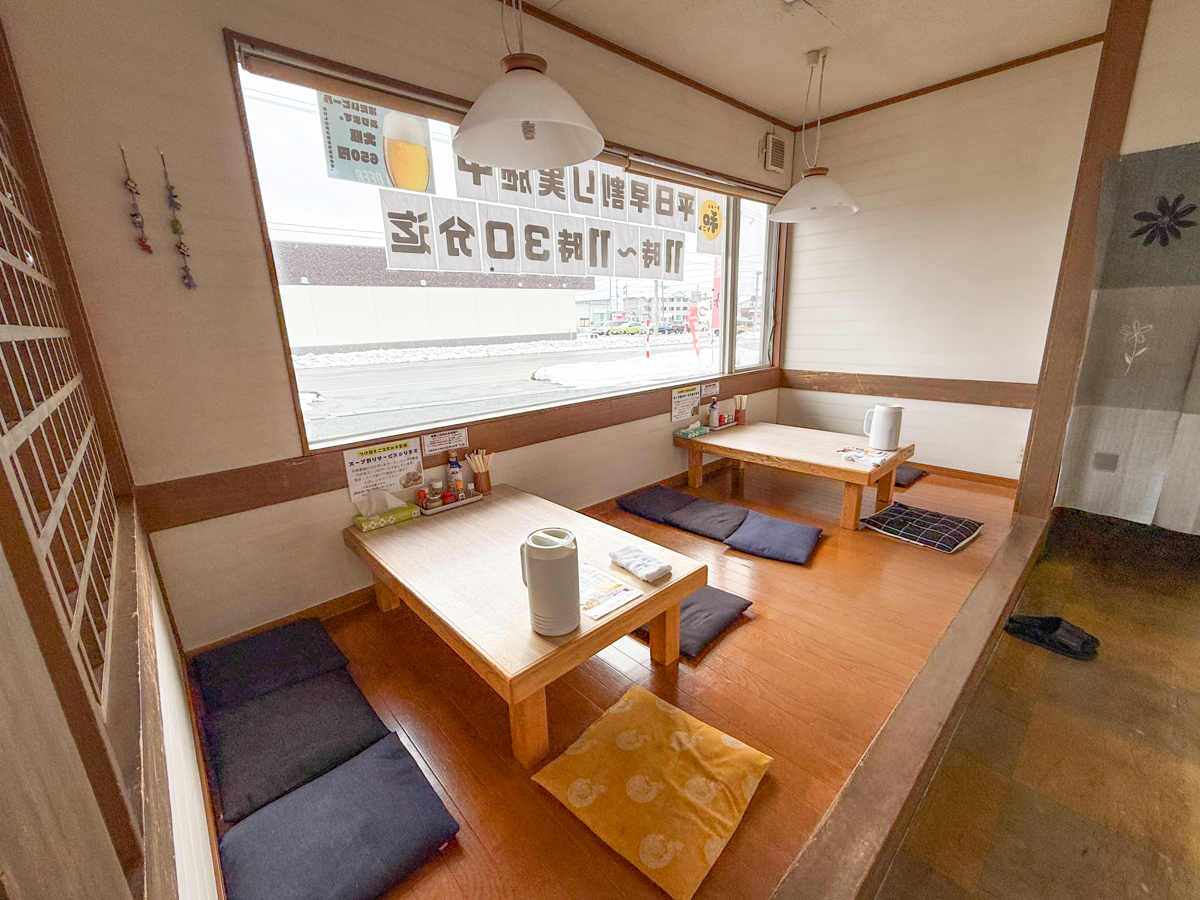 店内はカウンター席とテーブル席、小上がり。