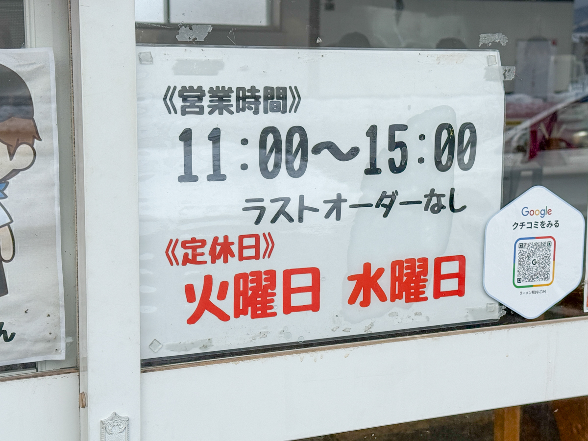 | 営業時間 | 11:00 ~ 15:00 (ラストオーダーなし) |