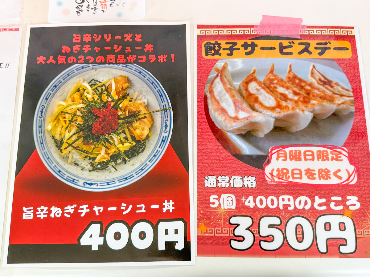 ちょっとお得にラーメンや餃子などをいただけます。