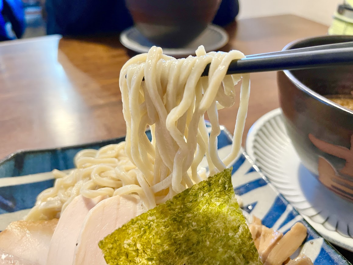 噛みしめるたびに小麦の豊かな香りが鼻を抜け、濃厚なつけ汁との相性も文句なしの絶品!