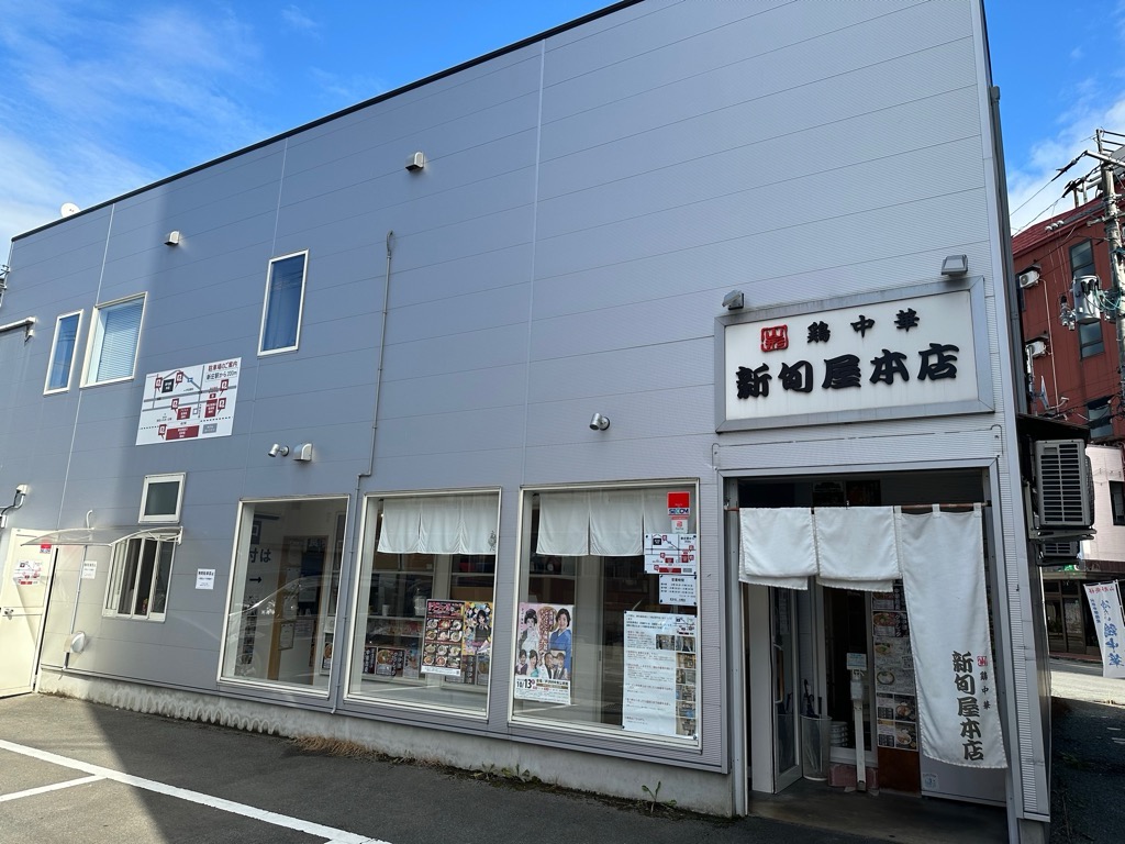 新庄市沖の町にある新旬屋 本店は、遠くからでも「あ、ここだ」とすぐに分かる存在感のある外観。