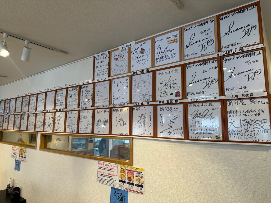 店内に足を踏み入れると、まず目に入るのが壁一面に並ぶ有名人たちのサイン。