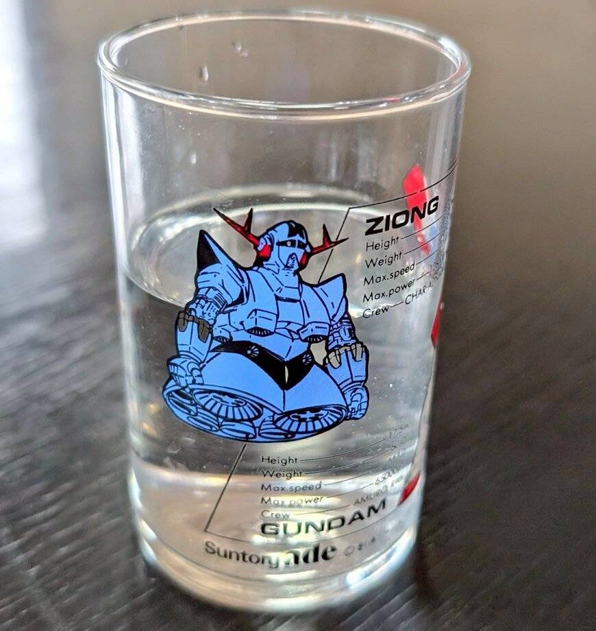 「サントリー エード ガンダムグラス(SUNTORY ADE GUNDAM GLAS)」は、1980年代初頭にサントリーが展開した清涼飲料「サントリーエード」のプロモーションの一環として制作されたノベルティグッズです。このグラスは、当時の人気アニメ『機動戦士ガンダム』(1979年放送)とのコラボレーションによって誕生しました。グラスには、ガンダムやジオング、ビグ・ザム、エルメス、ドム、ギャンなど、初代ガンダムのモビルスーツが描かれており、全5種類のデザインが存在します。