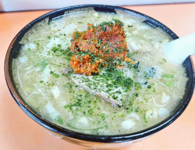 「辛みそ付き 梵天丸中華そば」と「白丸中華そば」をいただいたんですが、行列に並んででもいただきたい美味しさでした!!!
