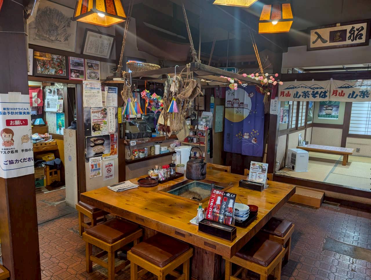店内中央の囲炉裏端の席がめっちゃ良い感じ。
