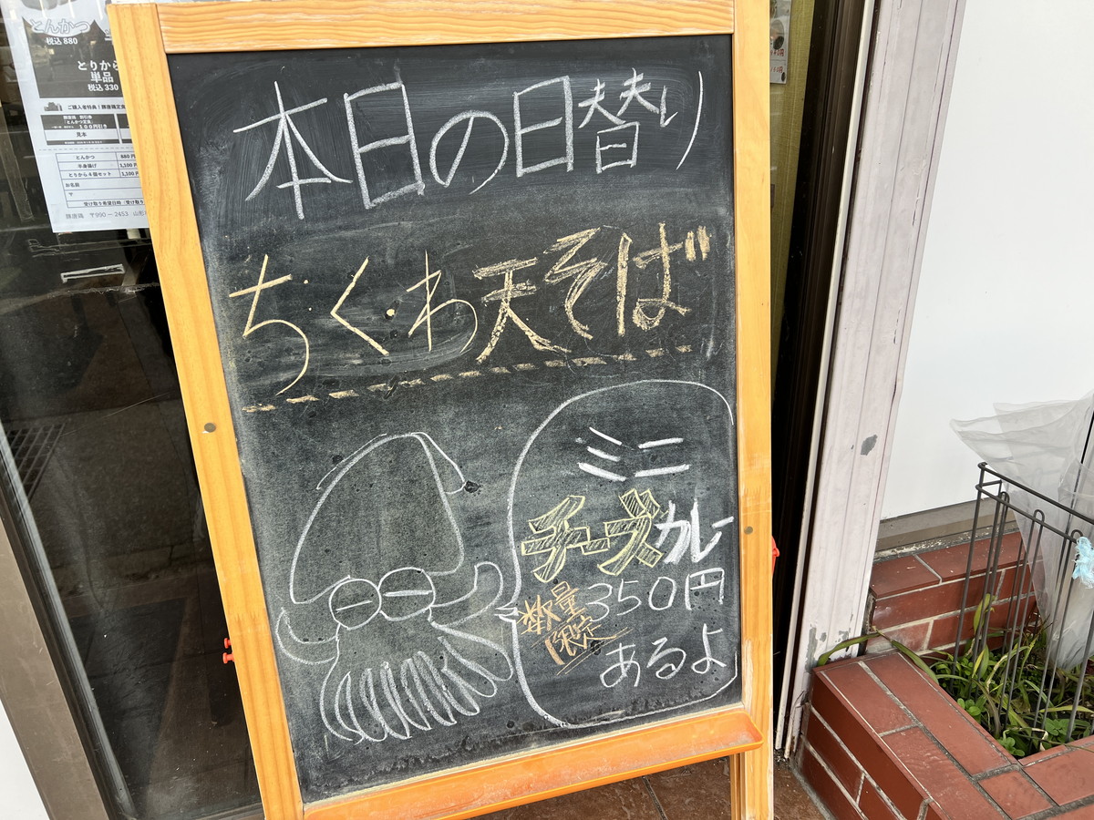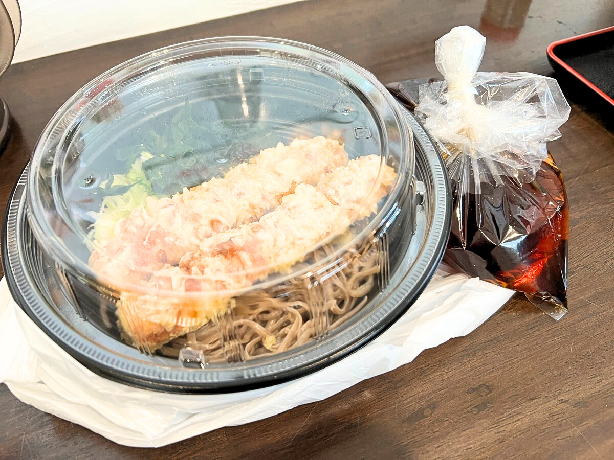 優しい笑顔が素敵なお客様がテイクアウトされた、日替わりの「ちくわ天そば」の写真を撮らせてくださいました!
