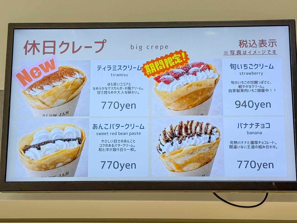 道の駅やまがた蔵王内にある「SLOWJAM ZAO」で、休日限定のクレープをいただいてきました。