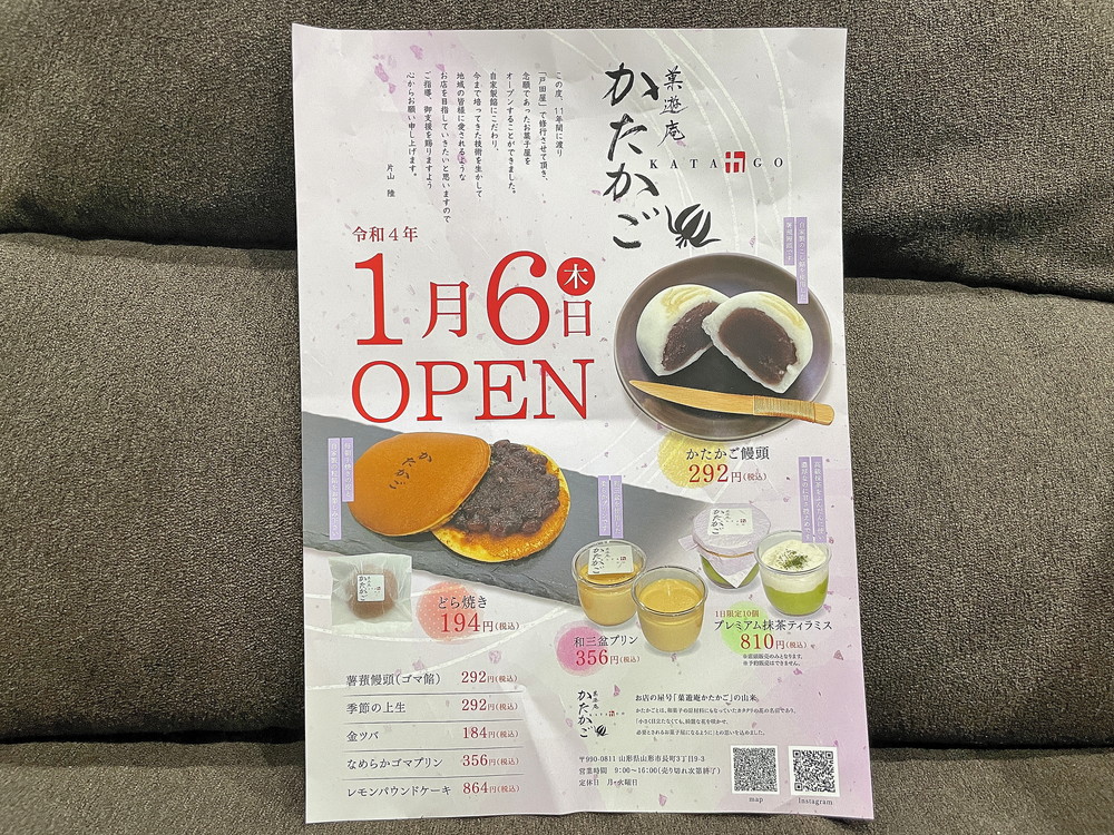 12月24日、山形市長町に和菓子店「菓遊庵かたかご」さんがプレオープンを迎えました。
