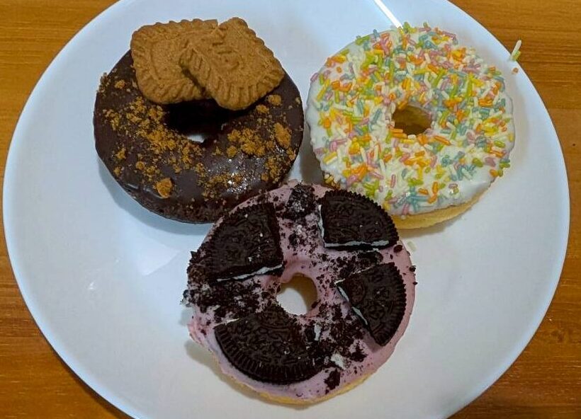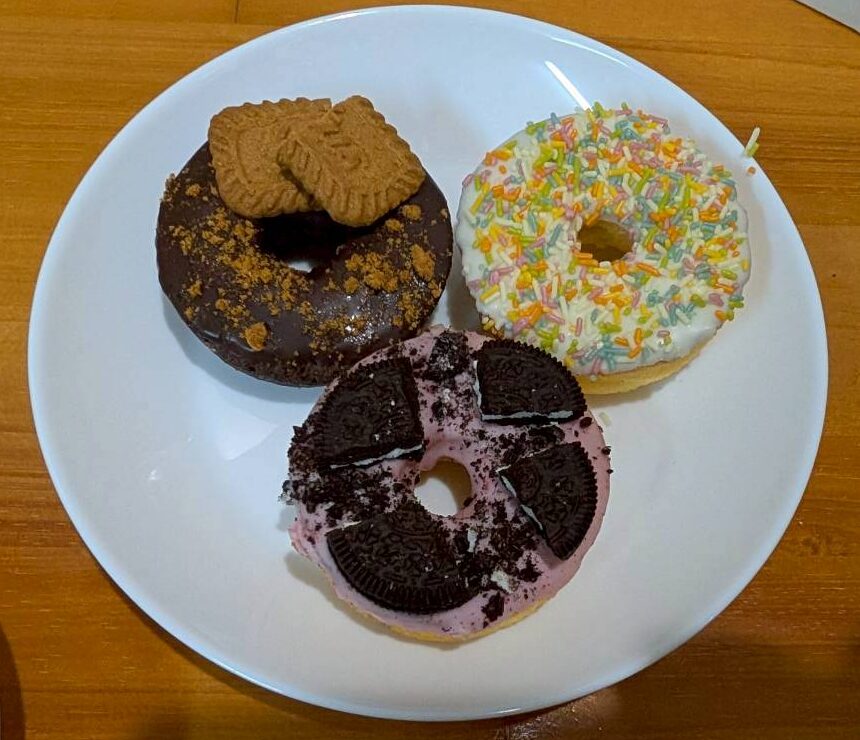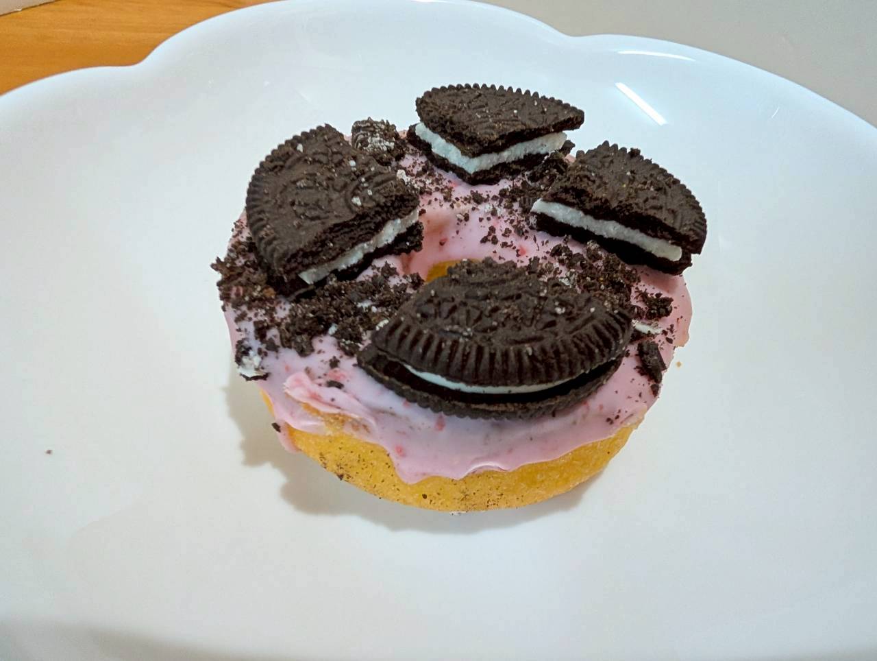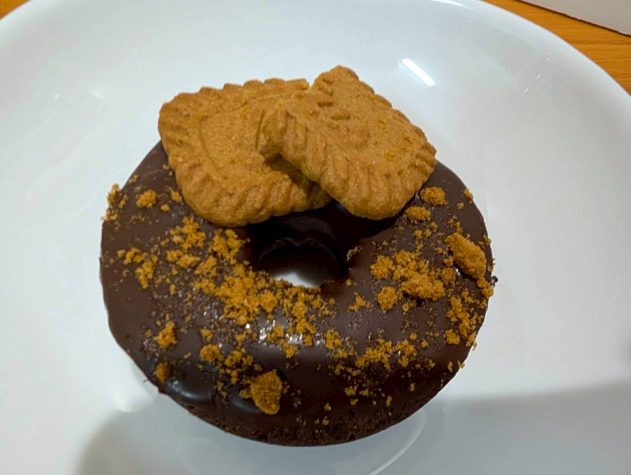 チョコレートの上にロータスクッキーがトッピングされたドーナツです。