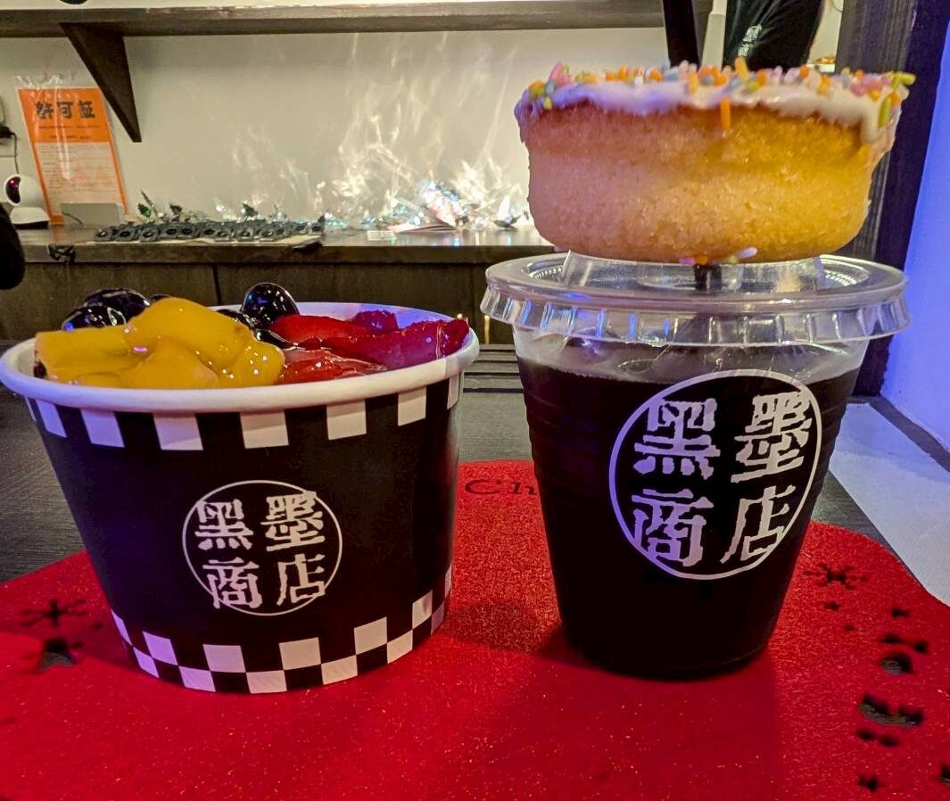 ドリンクはカップの蓋の上にドーナツをライドオンできます!