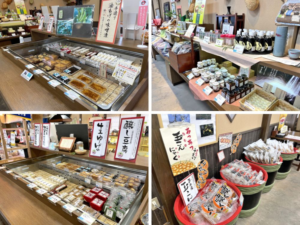 「水」・「豆」・「技」にこだわった豆腐を使用したお菓子・惣菜など幅広い商品を購入することができます。