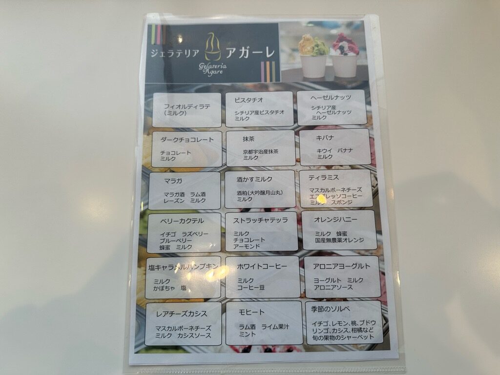 2.ジェラテリア・アガーレのメニュー