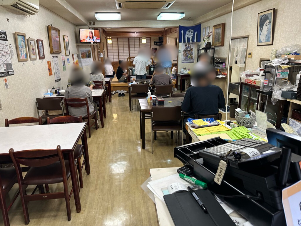店内はカウンター席やテーブル席、座敷席があり、地元客や家族連れで賑わう人気店です。