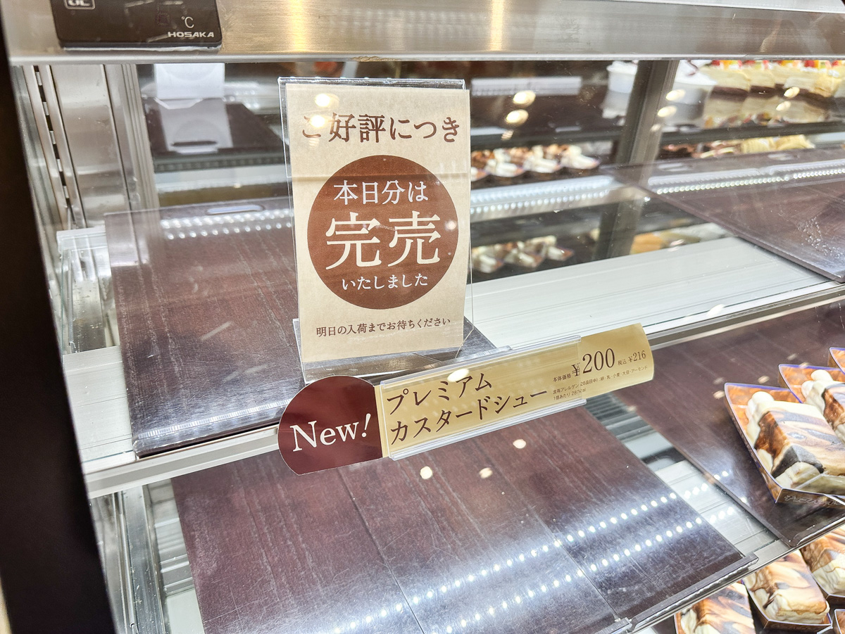 その他にも、人気のプレミアムカスタードシューなどの完売。