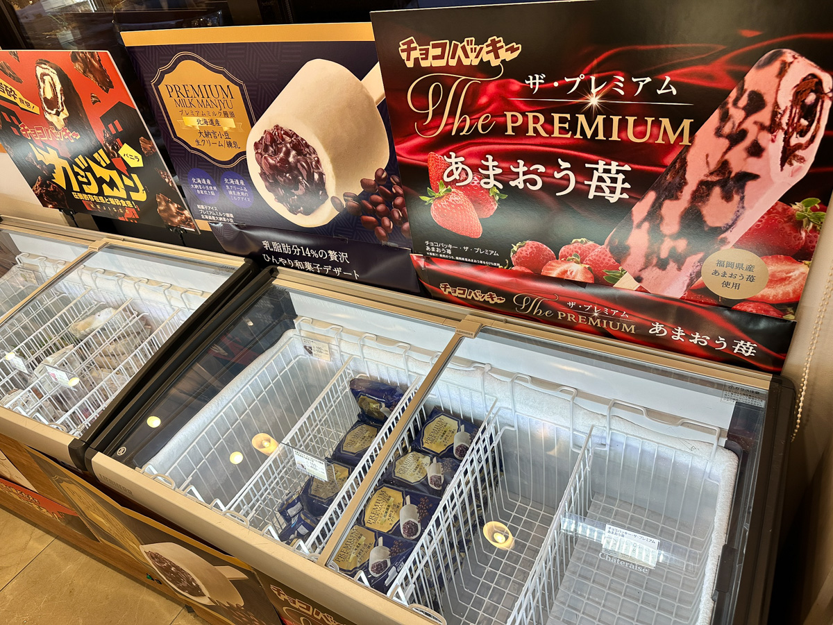 一方で、アイスの「チョコバッキー 完熟あまおう苺」などは残念ながら完売。
