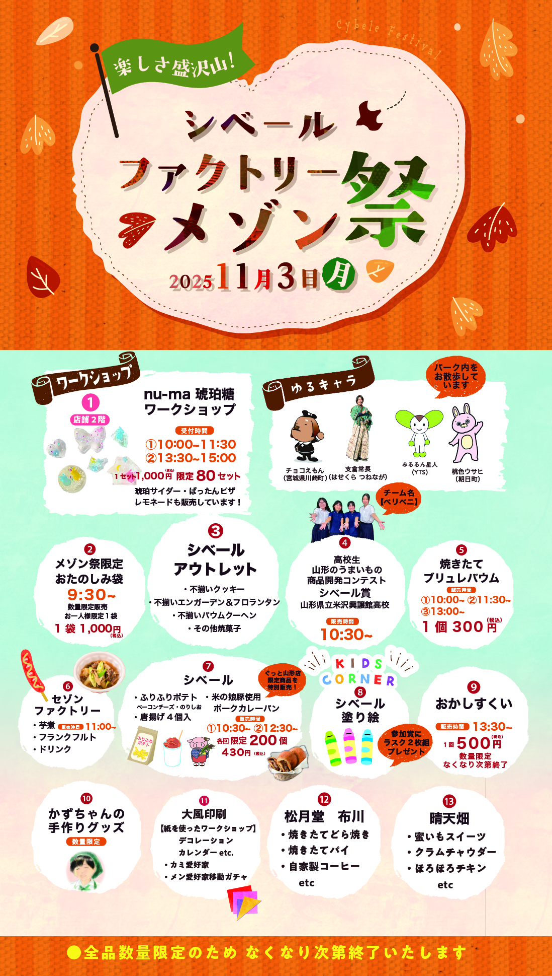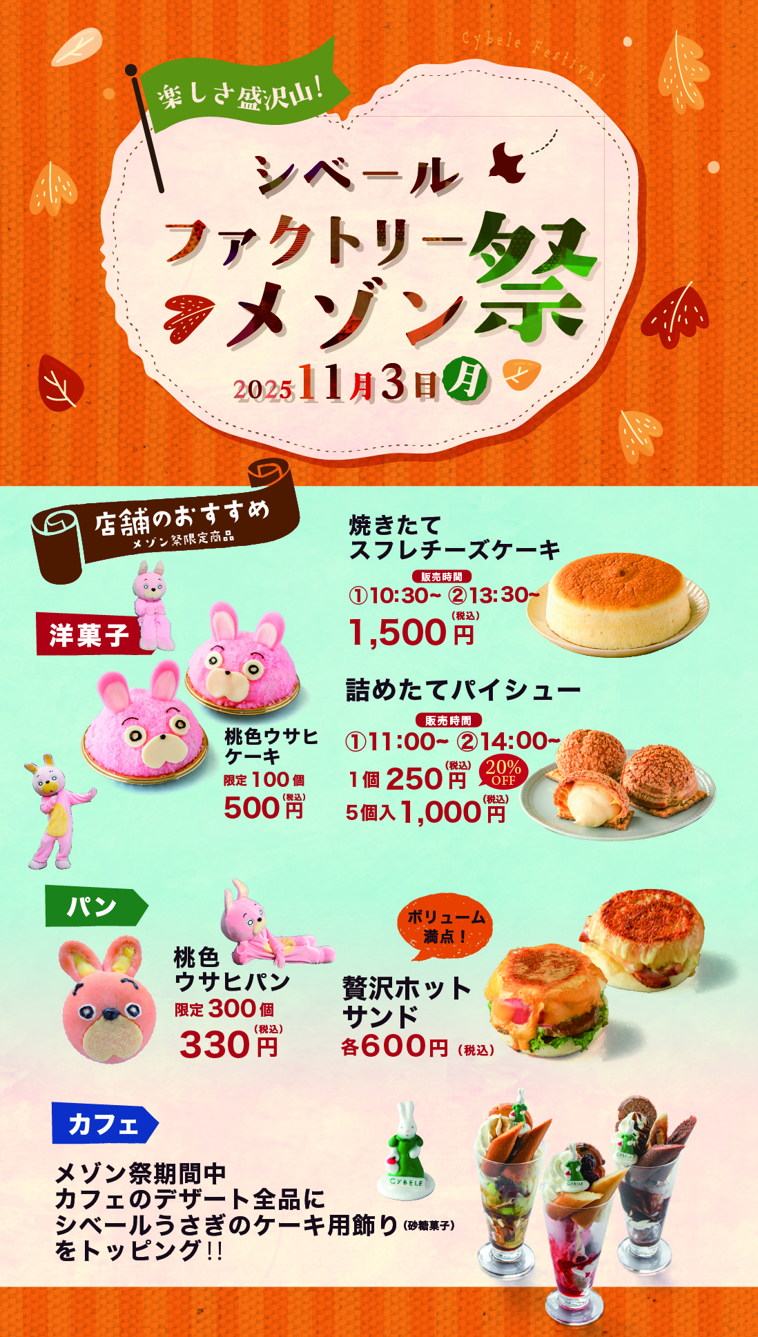 2025年11月3日(月祝)に、シベールにて「ファクトリーメゾン祭」が開催されます。