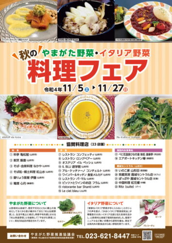 - 11/5〜11/27 秋のやまがた野菜・イタリア野菜料理フェアが開催(村山地域)