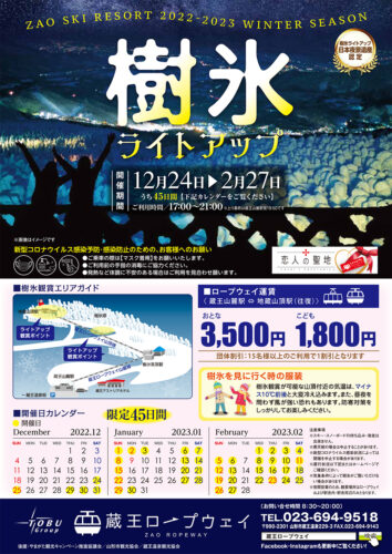 - 12/24~2/27 樹氷幻想回廊ツアーが開催