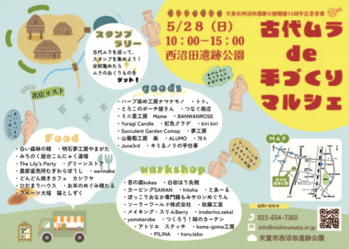 5/28 古代ムラde手作りマルシェが開催されます。(天童市)
