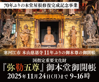 2025年9月13日〜11月24日まで、本山慈恩寺で11年ぶりの「弥勒五尊御開帳【秋季】」が開催されています。