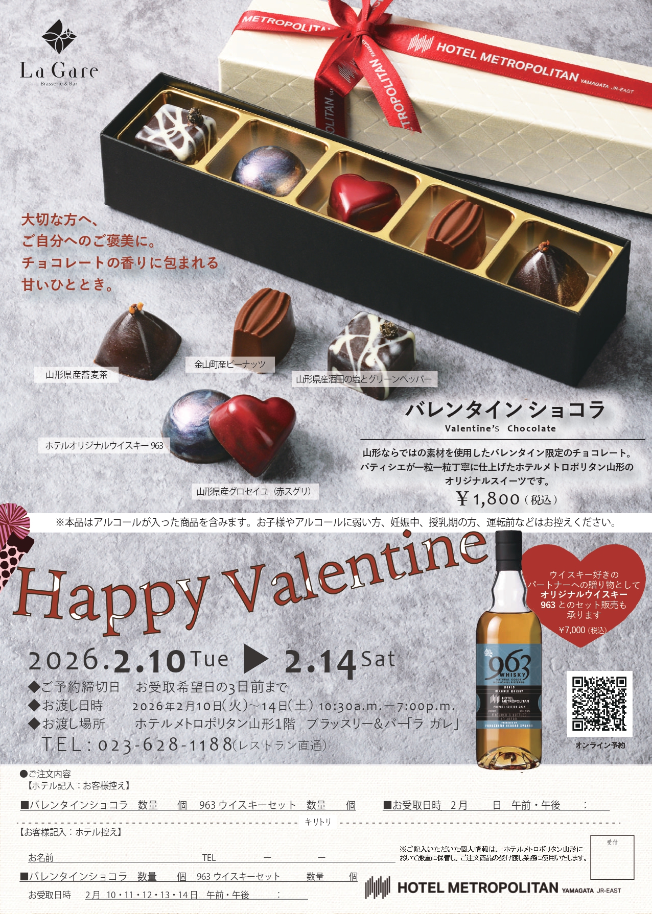 ホテルメトロポリタン山形のパティシエが、一粒一粒丁寧に仕上げたバレンタイン限定ショコラが登場しました。