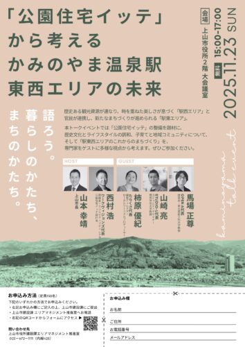 NEW【山形イベント情報11/23】「公園住宅イッテ」から考える かみのやま温泉駅東西エリアの未来(上山市)
