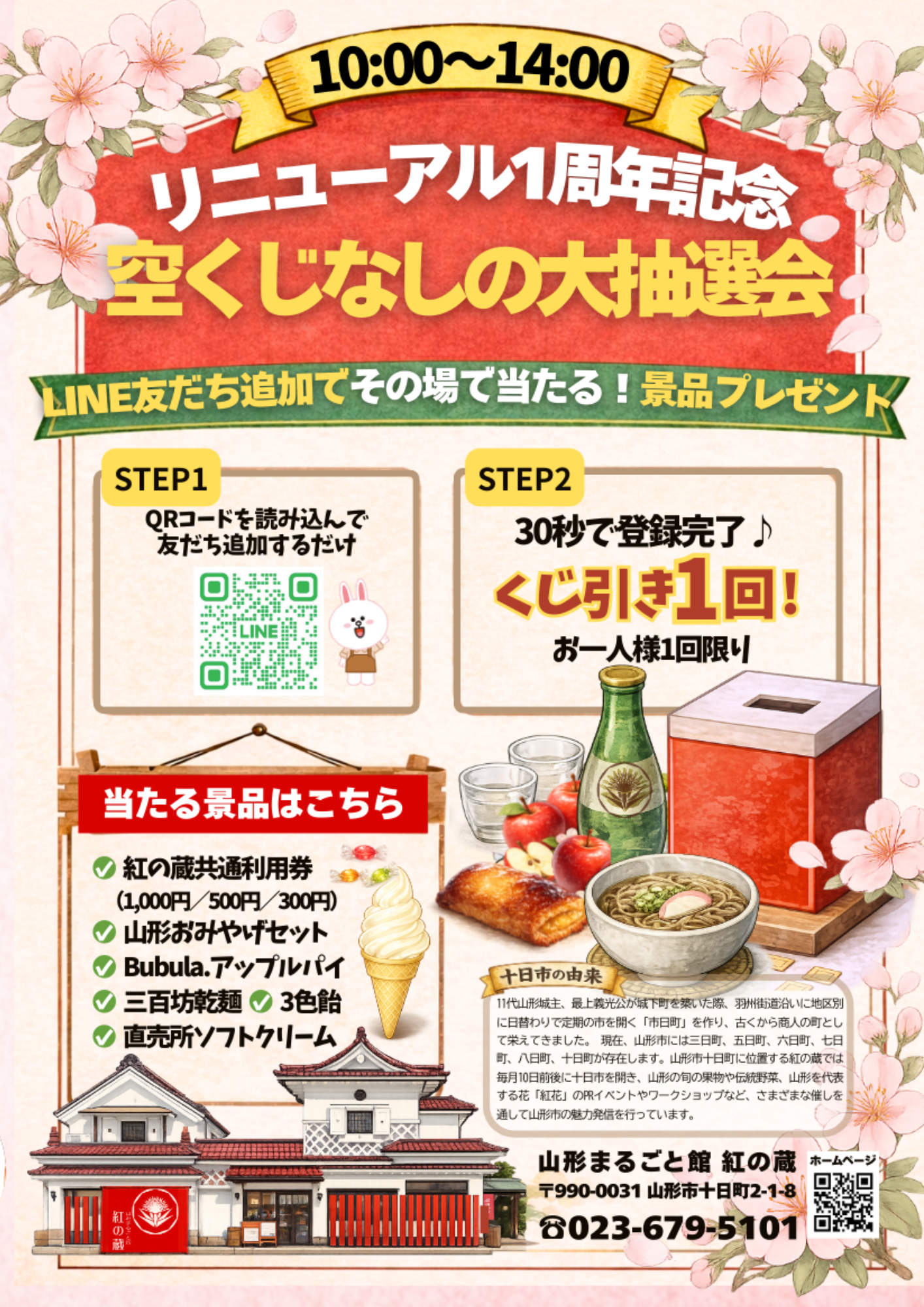 【山形イベント情報4/11-12】リニューアルオープン1周年記念「春のお花見マルシェ」|紅の蔵(山形市)
