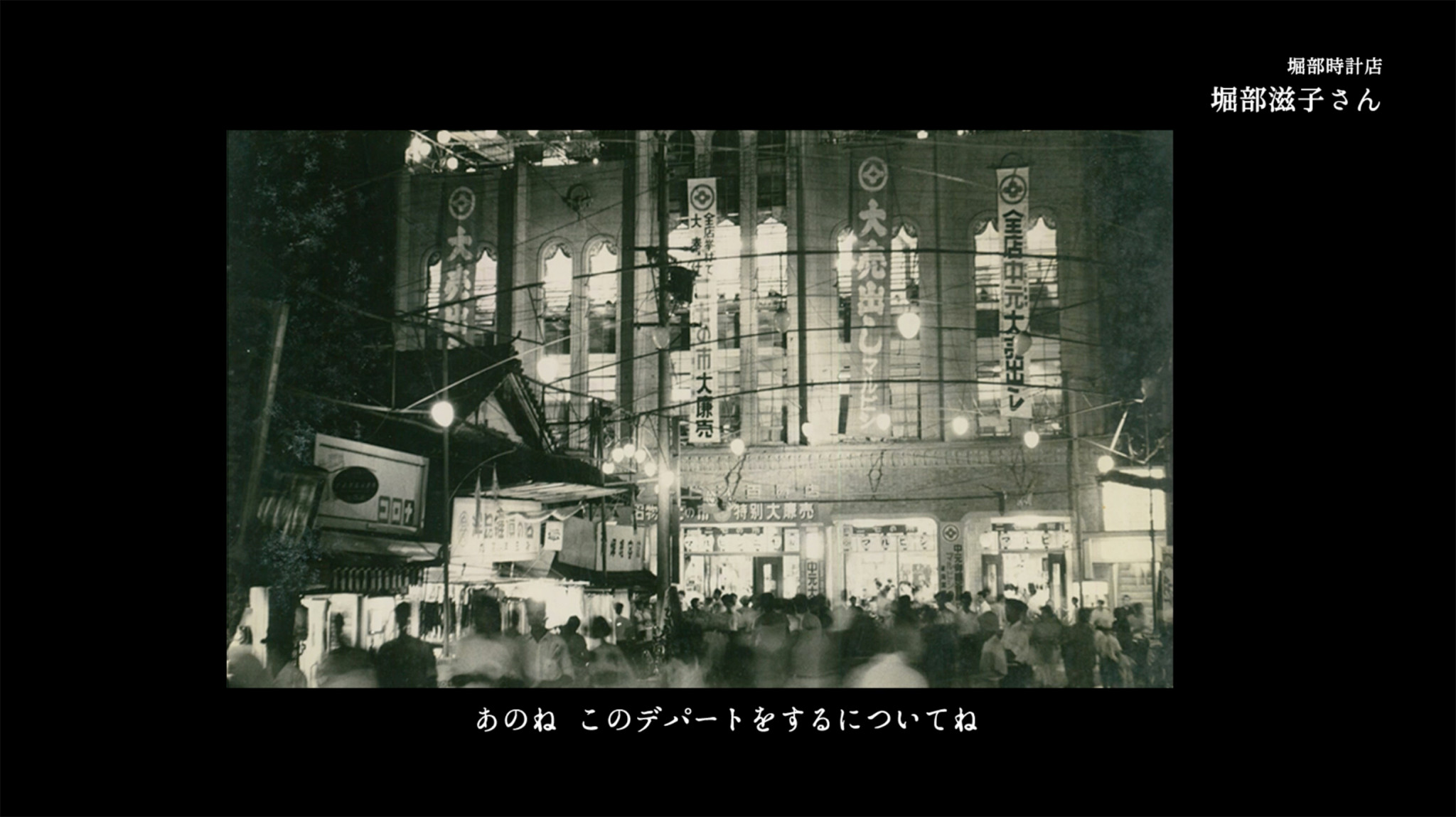 滋賀県彦根市の「銀座商店街」を舞台に制作した映像作品《マルビシ百貨店(1933〜2008)》を活用して、会場となる「すずらん商店街」との類似や差異を感じながら双方の対話や共感から地域と地域をアートで繋ぐ試みです。