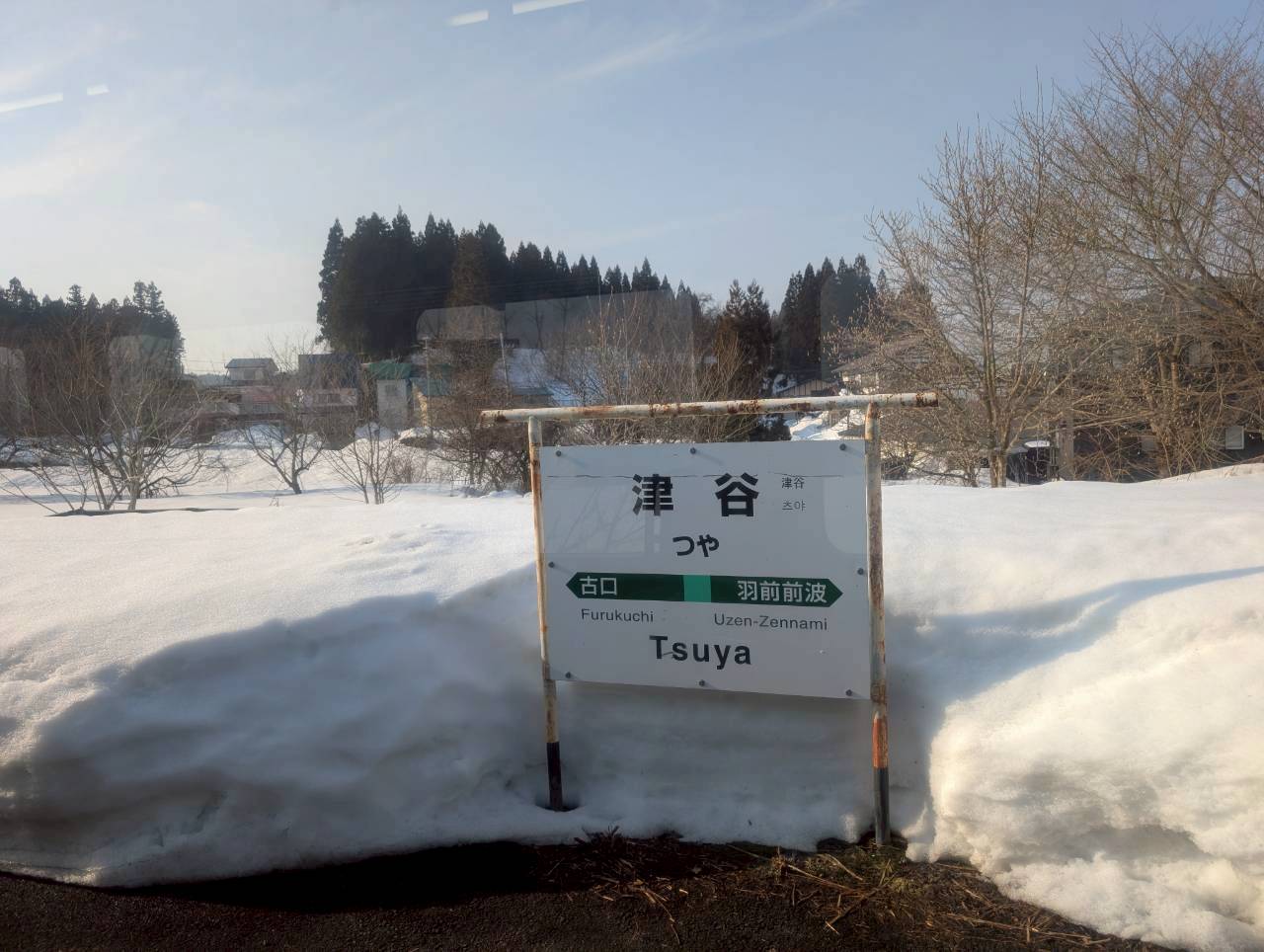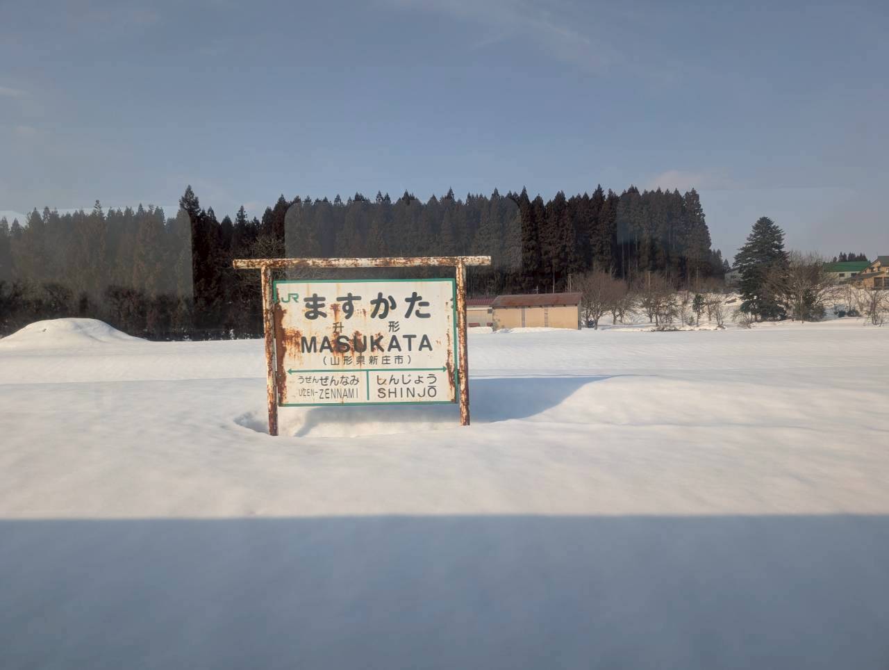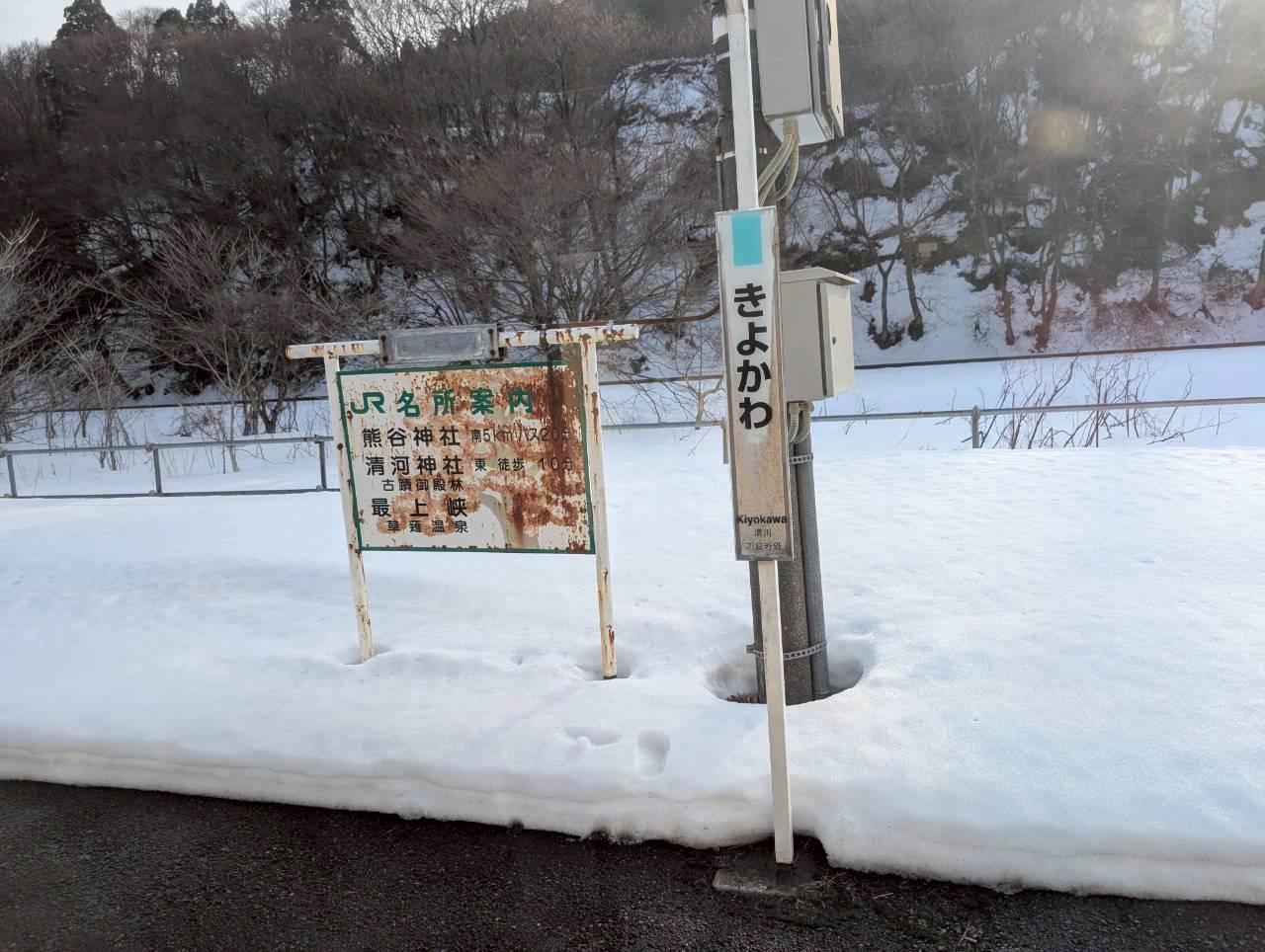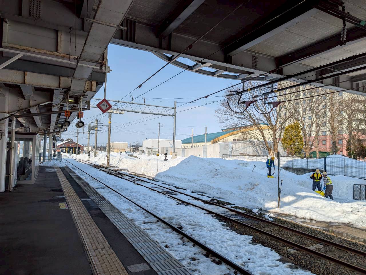 駅の表札の所の雪もヤバいですね。