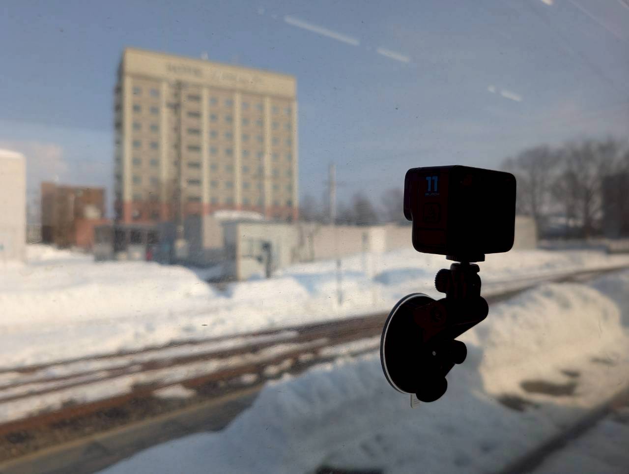 窓にGoProをくっ付けて行きます。