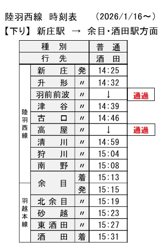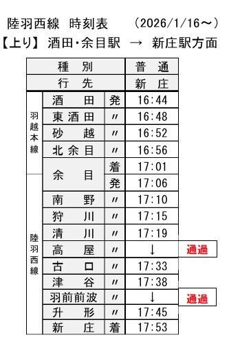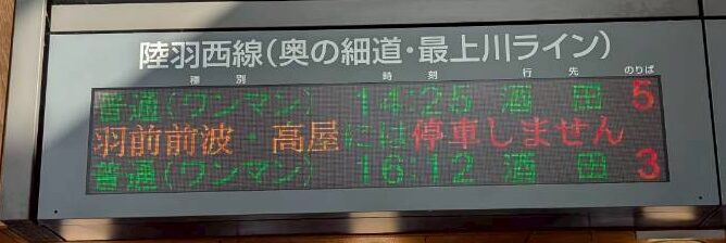 この時間から酒田に行って1時間後の折り返し列車で帰ってくる頃には