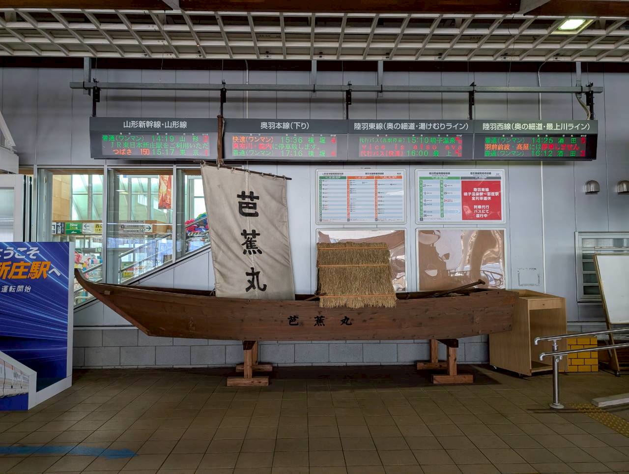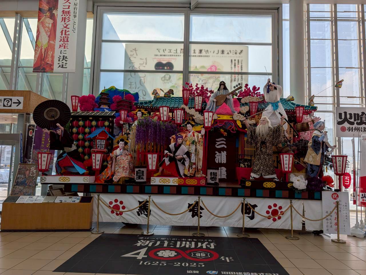 駅の中には新庄まつりの山車が展示されていました。