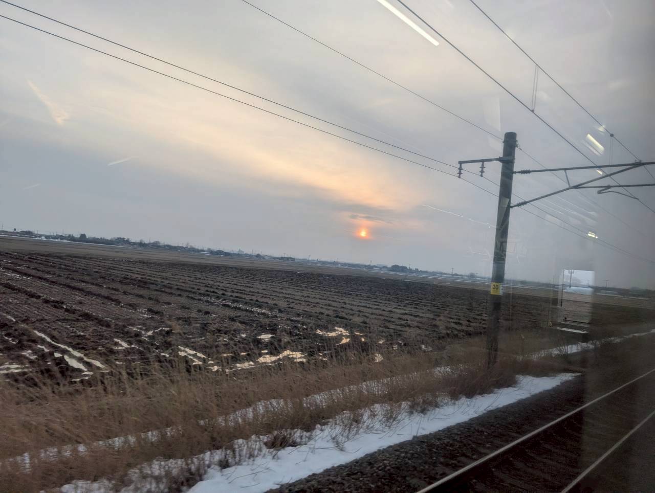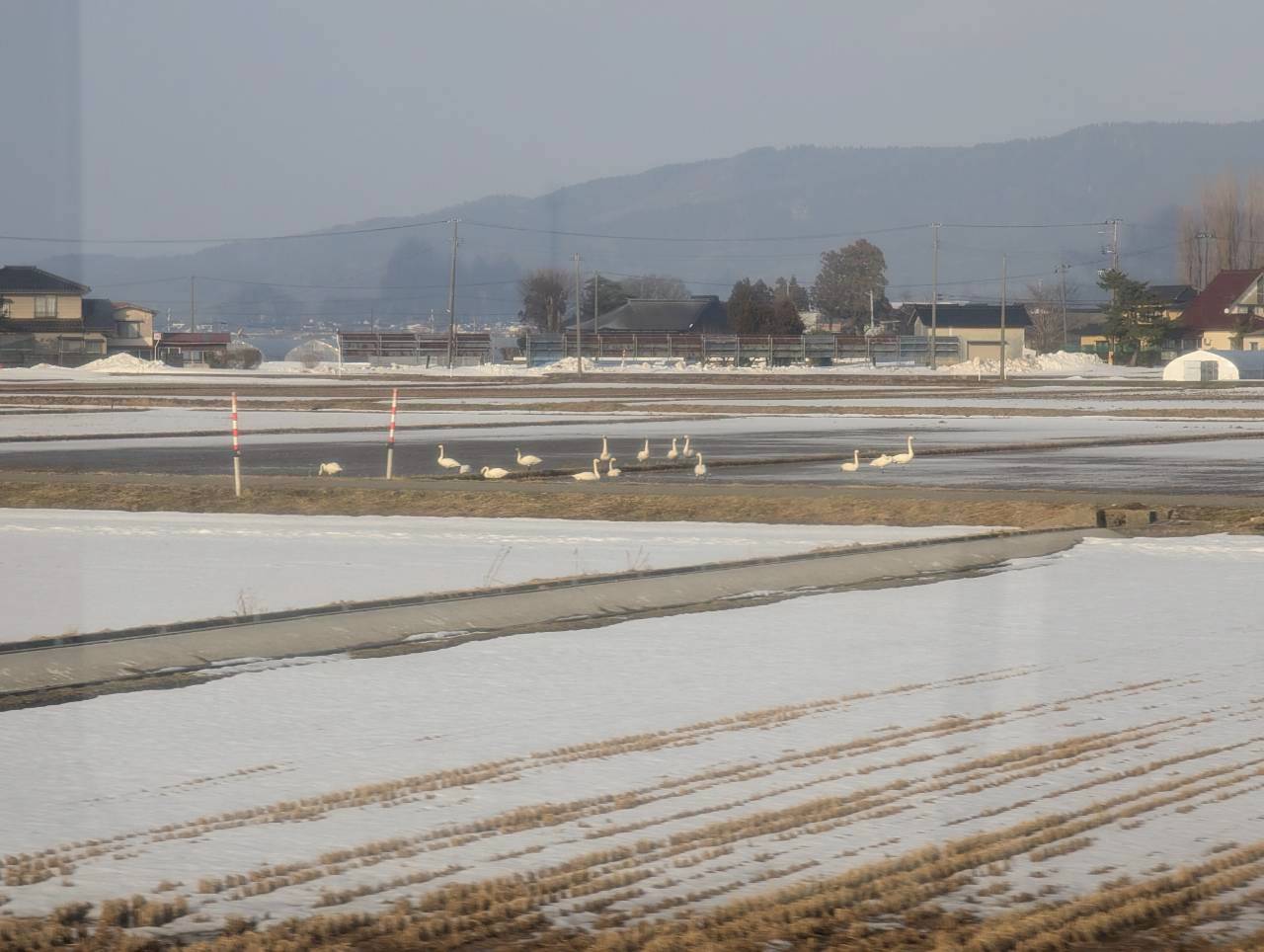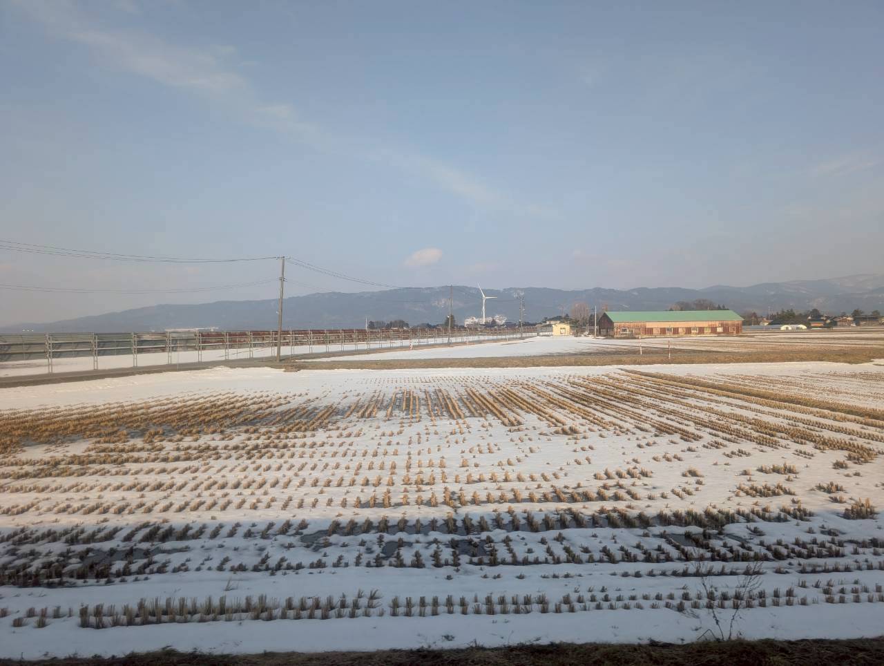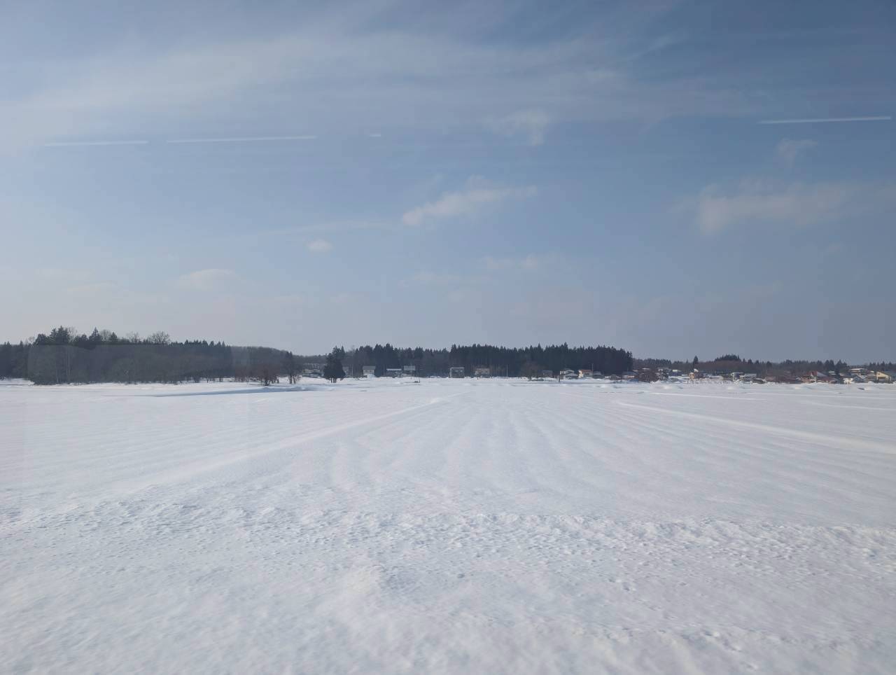 新庄駅を出て、直ぐに広大な雪原が広がります。