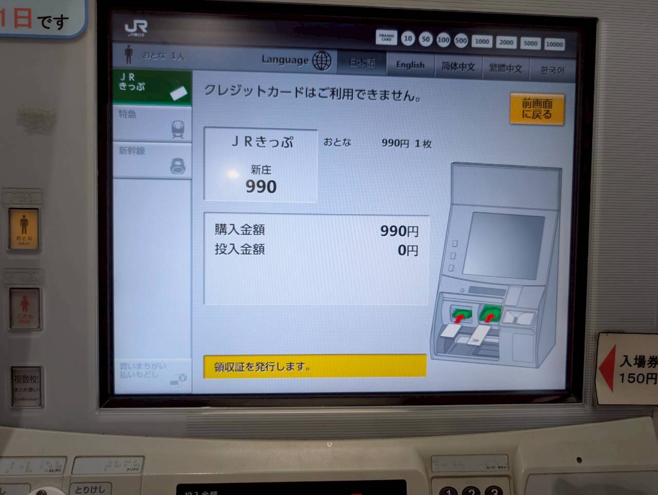 990円の切符を購入。